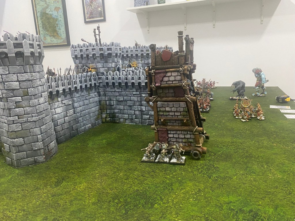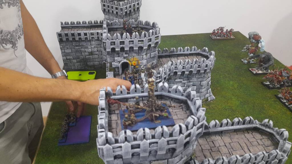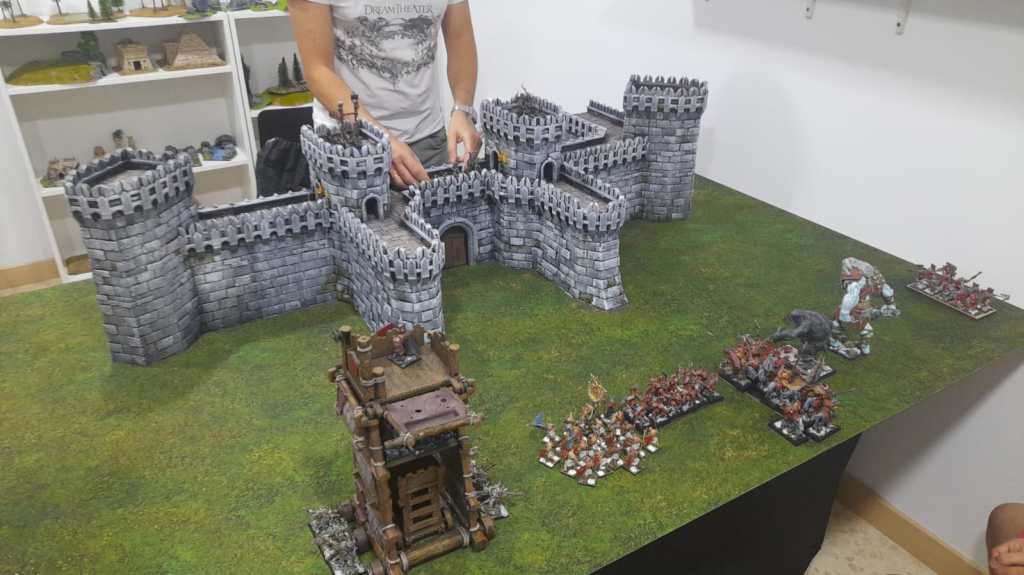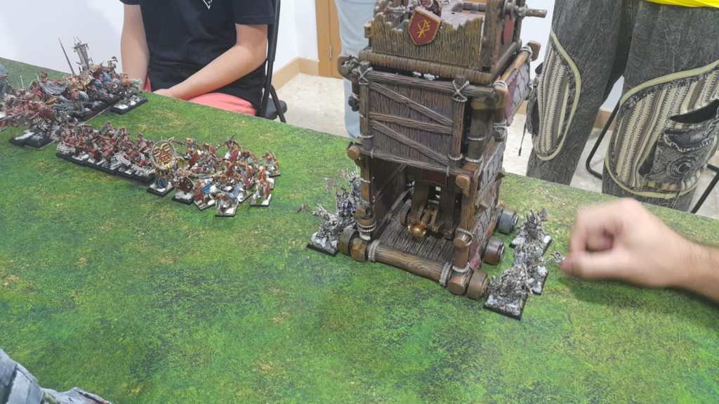 Los defensores ocuparon las almenas con la disciplina eterna de la muerte. Confiaban en la solidez de los muros que ahora habitaban y en la protección mística del Arca de Almas. Al otro lado, la hueste del Caos formó una línea de batalla aterradora: En el flanco izquierdo, una titánica Torre de Asedio empujada por Ogros marcaba el punto principal de ruptura. El resto de la línea de batalla, compuesta por caballería pesada y monstruos de pesadilla, se extendía hacia el centro y la derecha, listos para el asalto general.