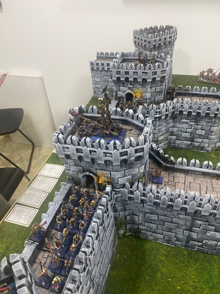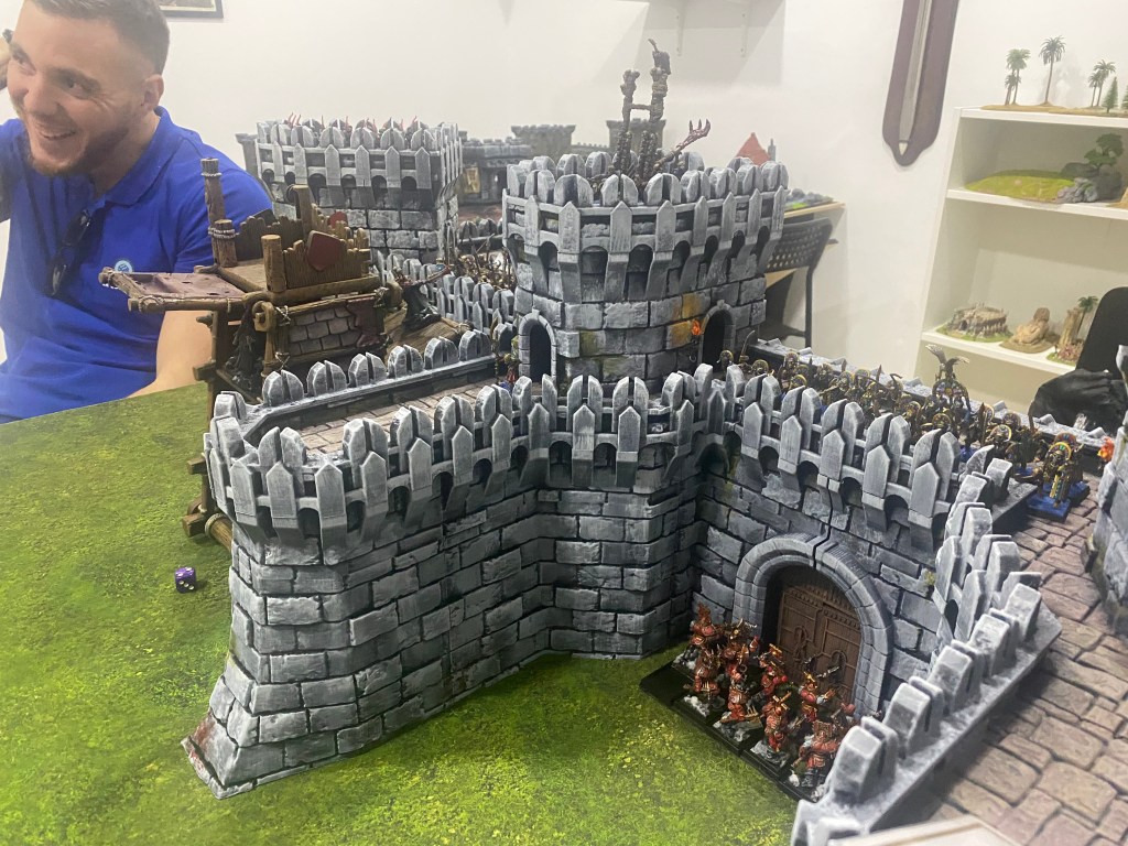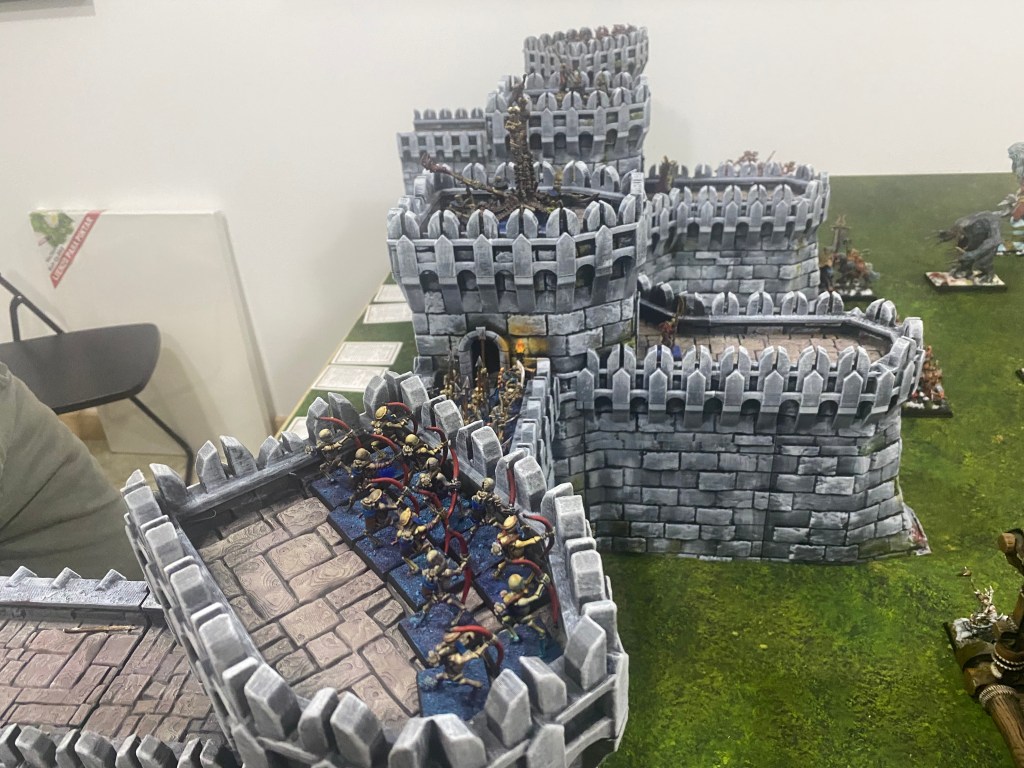 Tras la élite acorazada de Guerreros del Khorne, los Ogros treparon desde la torre para unirse al festín, ocupando el patio interior. Atrapado entre los guerreros en las almenas y los monstruos que entraban por la brecha del muro derecho, el Rey Funerario vio caer su dominio. La fortaleza pertenecía ahora a los Poderes Ruinosos.