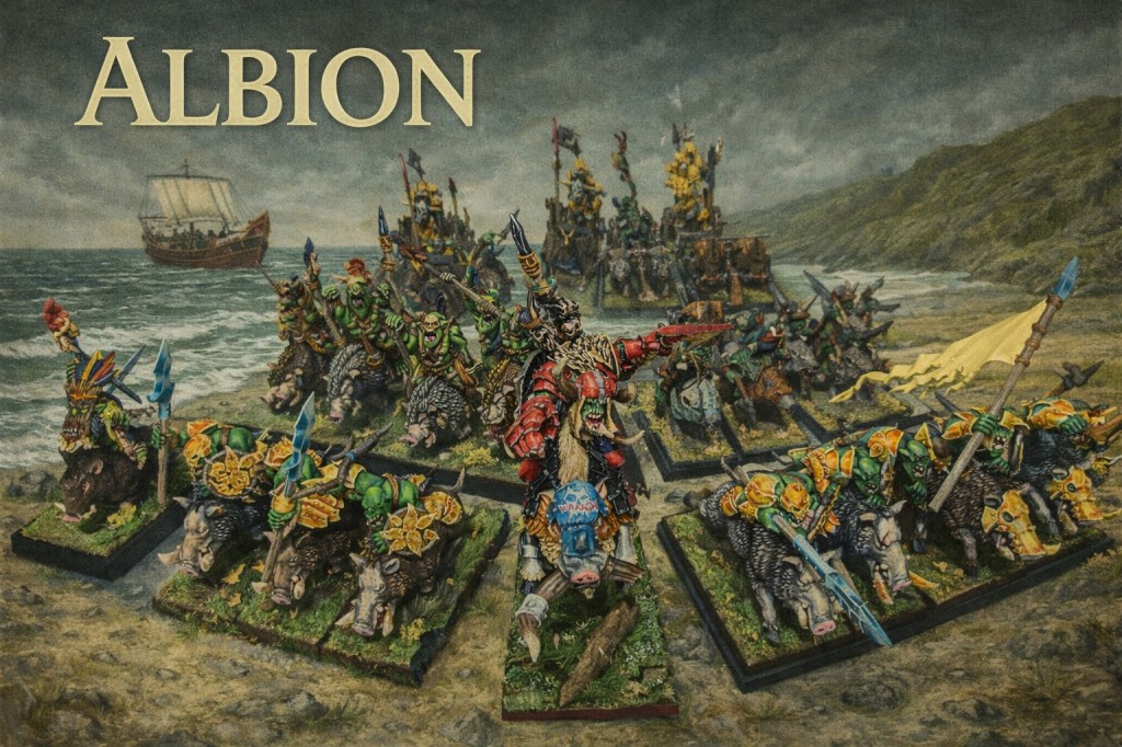 El micelio me transmite las vibraciones del suelo mucho antes de que podamos verlos. Una horda se acerca, rompiendo ramas y profanando el silencio sagrado de este enclave. Son bestias de piel verde, guiadas no por un propósito, sino por la huida. Mis exploradores susurran un nombre: Kardoz. Un Kaudillo que cabalga con una furia frenética, como si intentara dejar atrás su propia sombra. Dicen que busca gloria en Albión, que sigue una «llamada», pero el bosque no miente: Kardoz no corre hacia la victoria, corre para escapar de su propia vergüenza. Sus carros «Rompefilas» y sus jinetes de jabalí no son más que una estampida de ruido y colmillos intentando acallar las burlas de una antigua derrota.