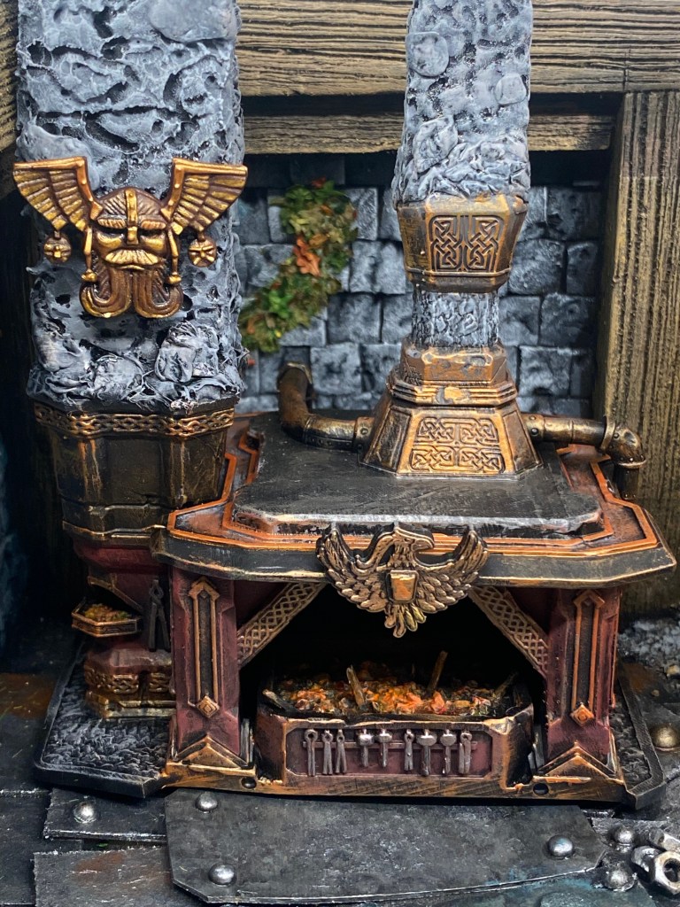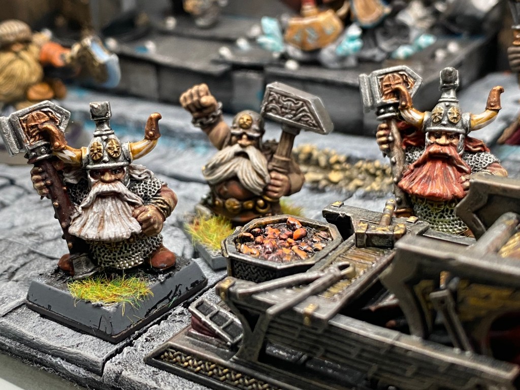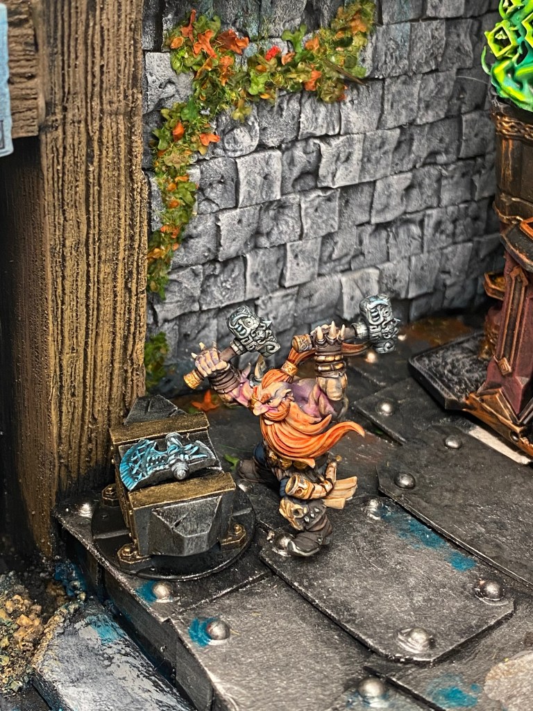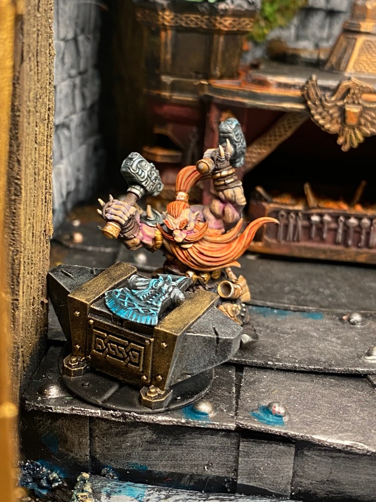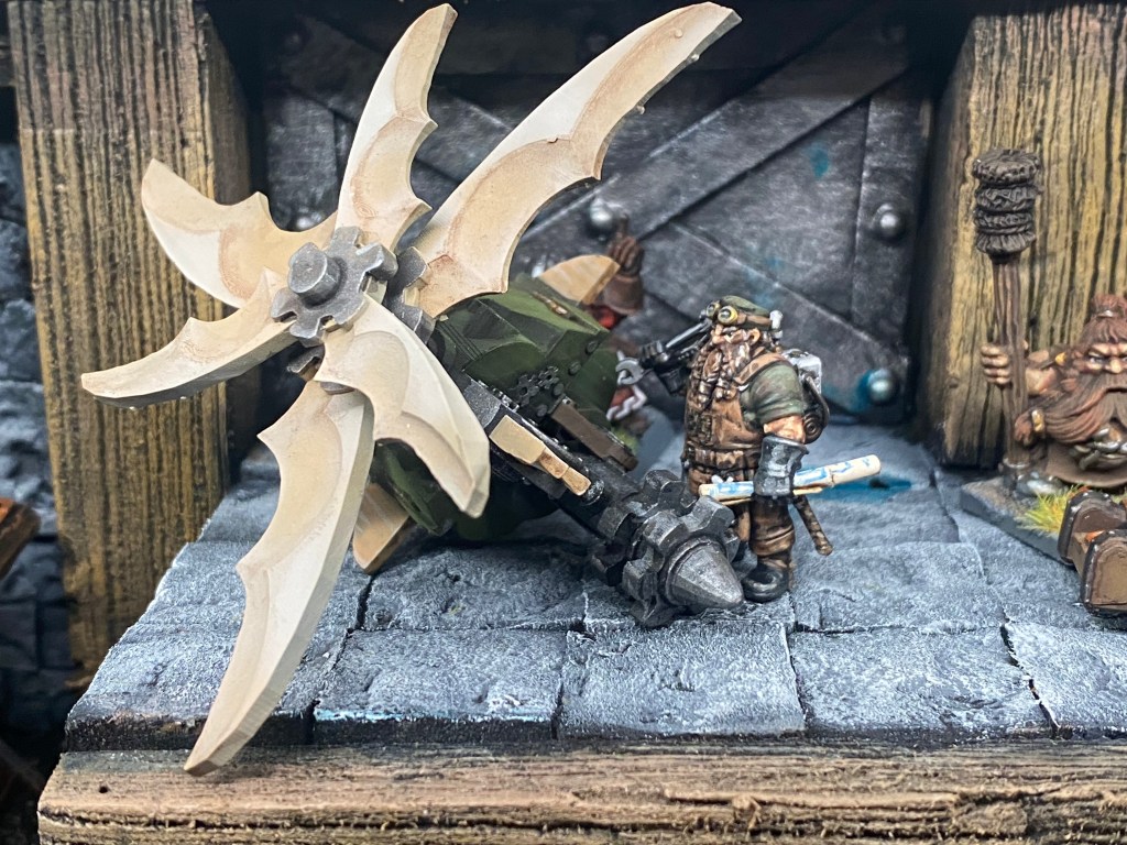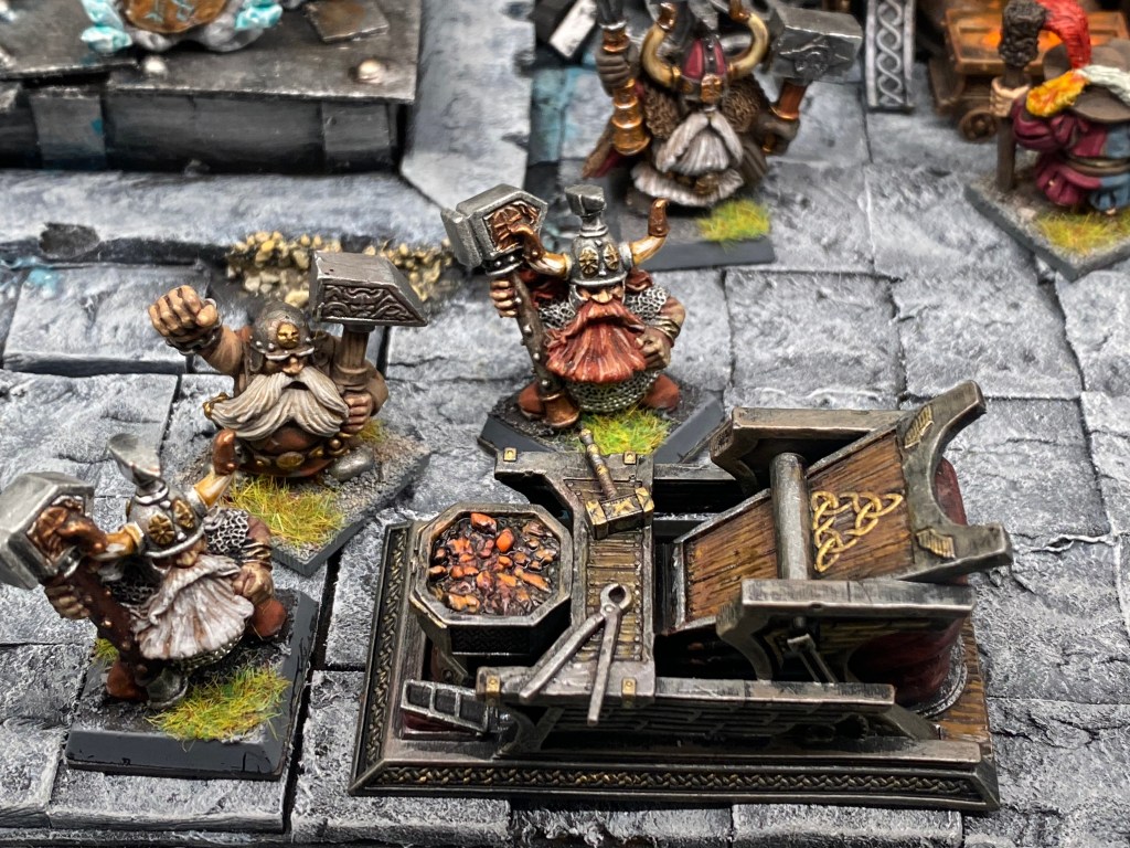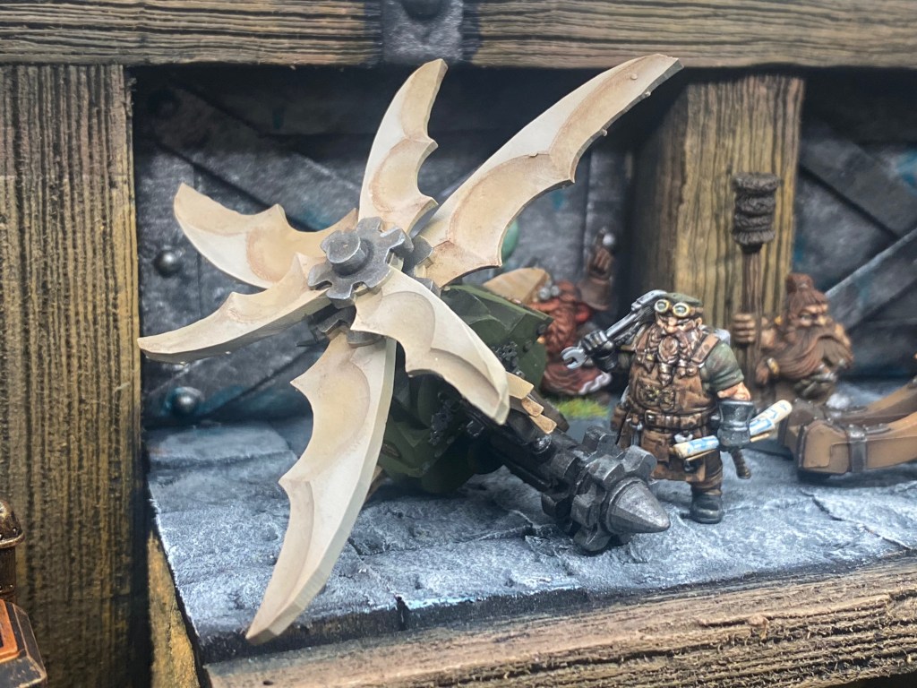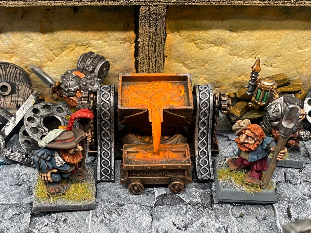 Allí, alzándose estoico bajo su estandarte, viaja el legendario Kurgaz, el forjador primigenio y padre de los Yunques de la Perdición. Sin embargo, su reliquia no está anclada a las profundidades de la roca madre. En un acto de audacia táctica sin precedentes, Kurgaz ha montado la magia más pesada y sagrada de nuestra raza sobre un recio chasis móvil. Mientras empuña su martillo con una fiereza que desafía a sus años, la intención queda clara: si la furia de los Ancestros hace falta en el frente de batalla, este viejo maestro no va a esperar sentado. Él llevará la forja a la guerra.