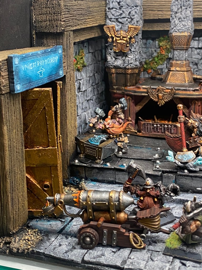 Si abajo se escuchaba el latido de la montaña, aquí se escucha su grito. El sonido de mil martillos golpeando al unísono, el silbido del vapor a presión y el cantar de las runas al ser grabadas en el metal al rojo vivo.
