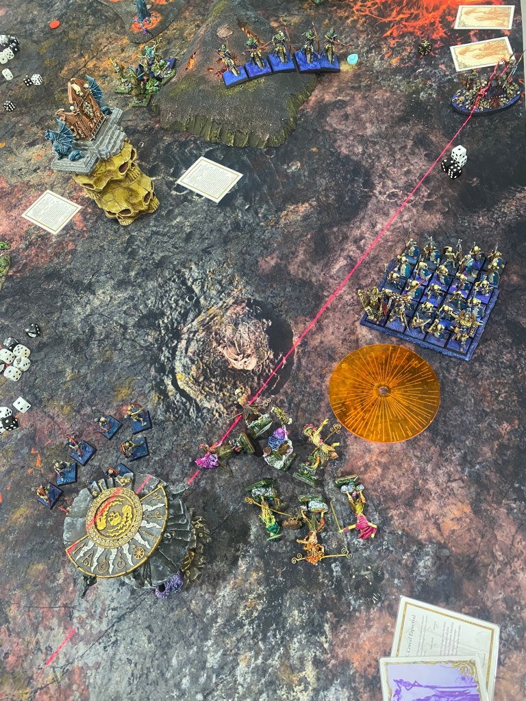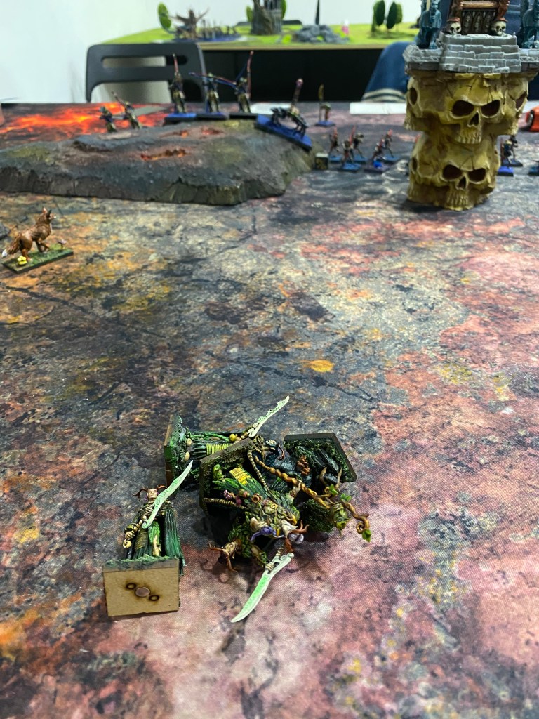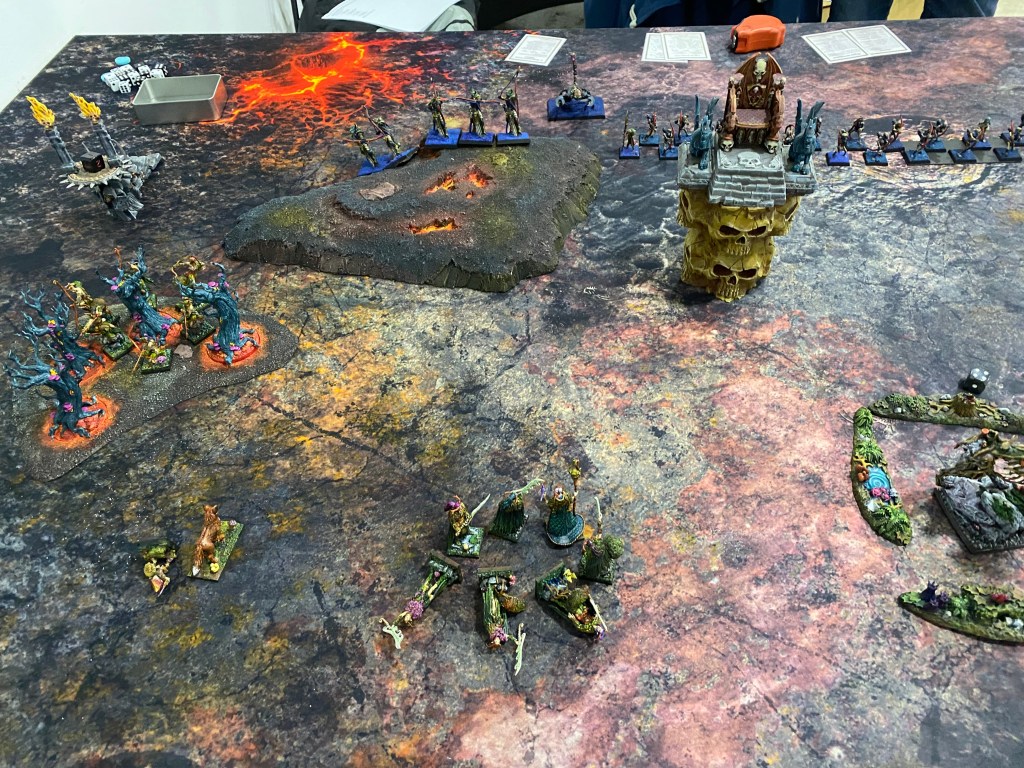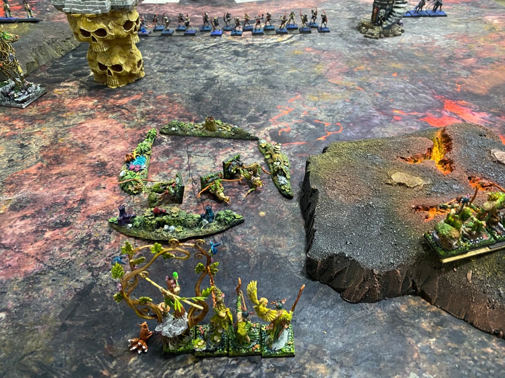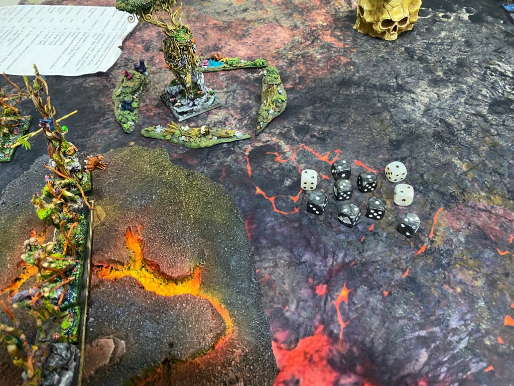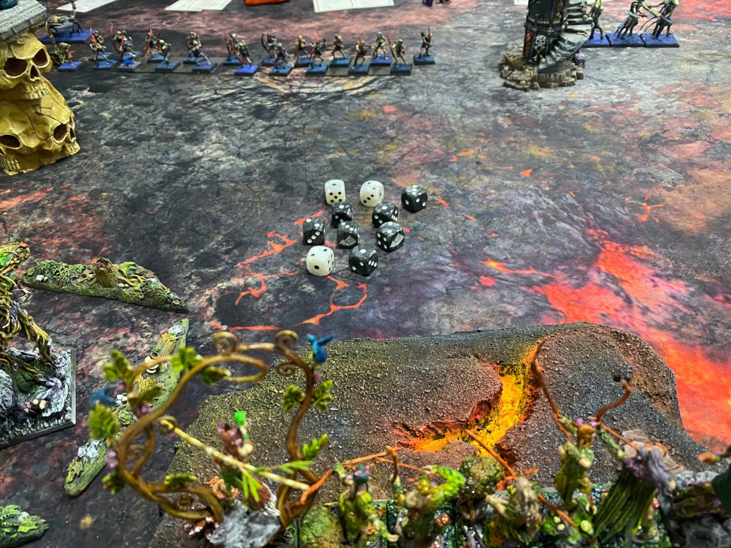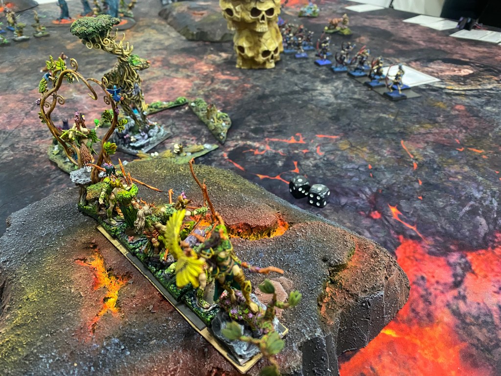 Con las Driades destrozando finalmente al primer Golem Escorpión tras una dura contienda, me quedé observando a lo lejos, a través de la densa oscuridad y el humo del azufre, al General de los muertos… inalcanzable para mi magia agotada. Nuestro ejército estaba en jirones, pero la batalla aún exigía un último tributo de sangre.