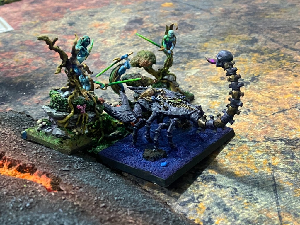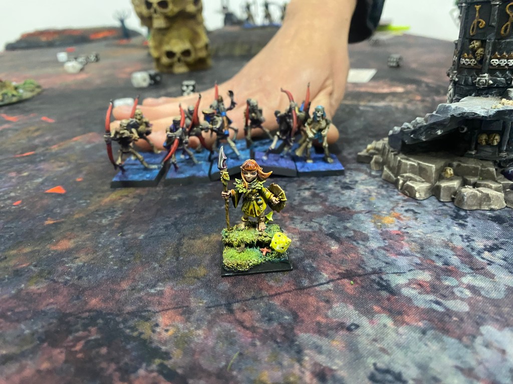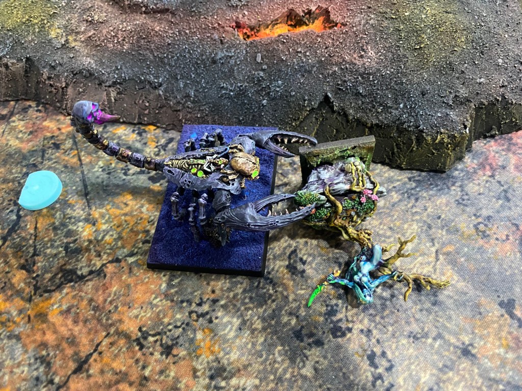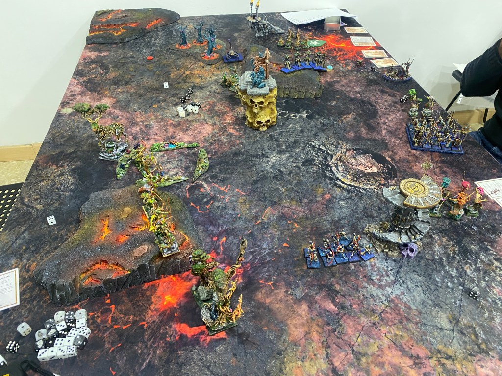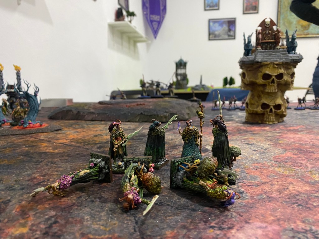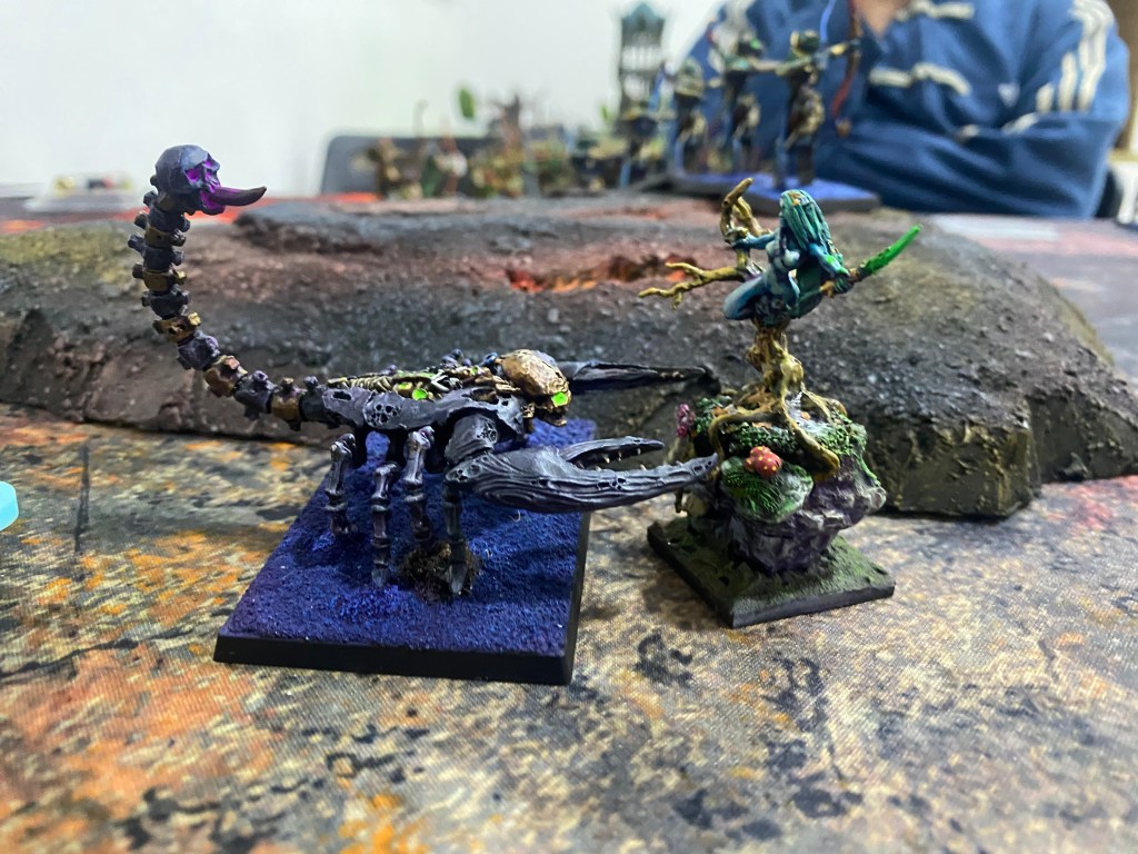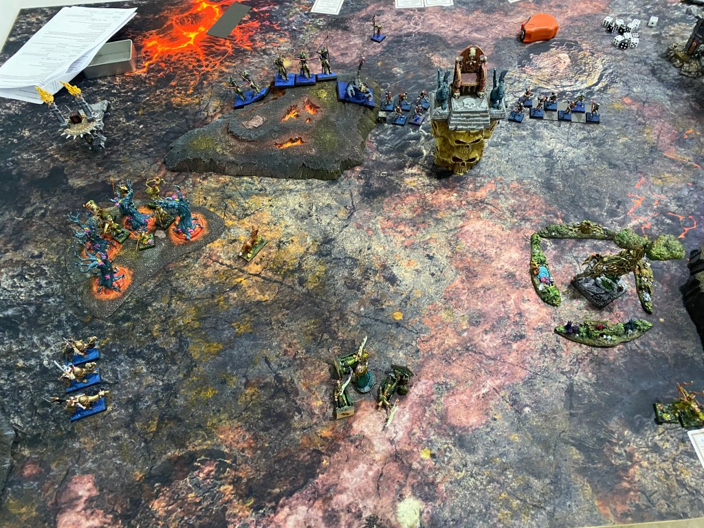Con las Driades destrozando finalmente al primer Golem Escorpión tras una dura contienda, me quedé observando a lo lejos, a través de la densa oscuridad y el humo del azufre, al General de los muertos… inalcanzable para mi magia agotada. Nuestro ejército estaba en jirones, pero la batalla aún exigía un último tributo de sangre.