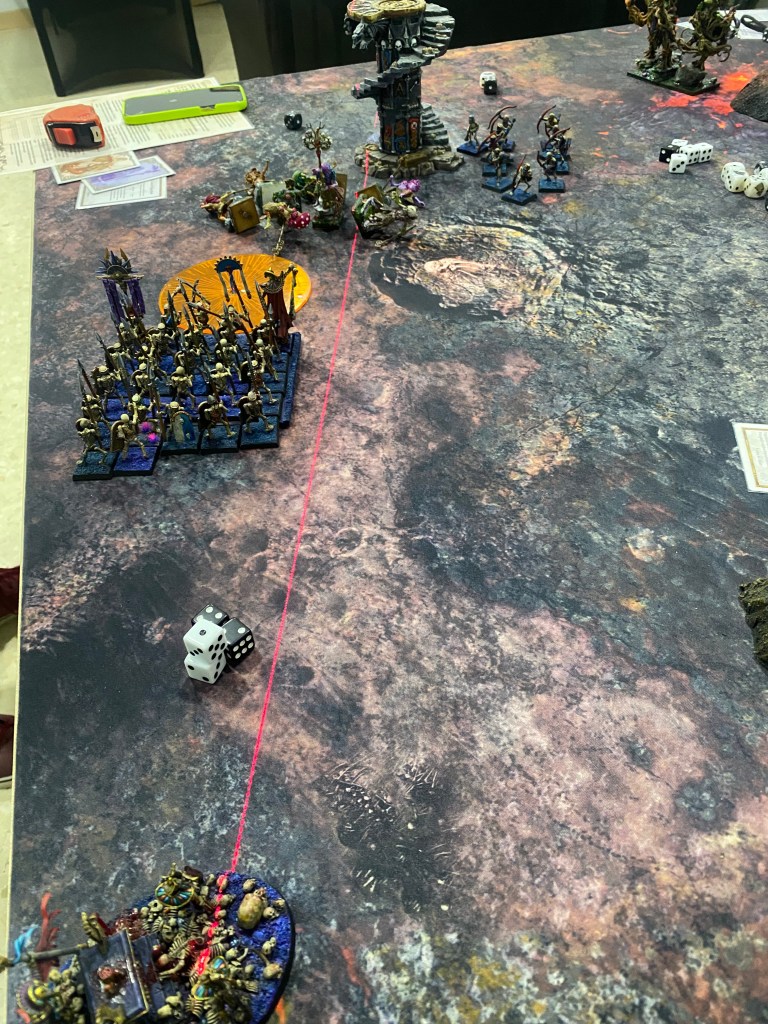 El único Saolin superviviente junto a su Maestro cargaron a la retaguardia de la unidad del Gran Sacerdote Mortuorio a la vez que la otra unidad de Saolines lo hacia por su frente.