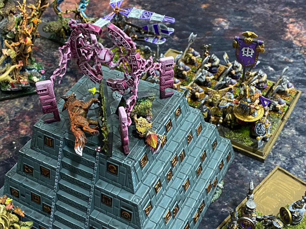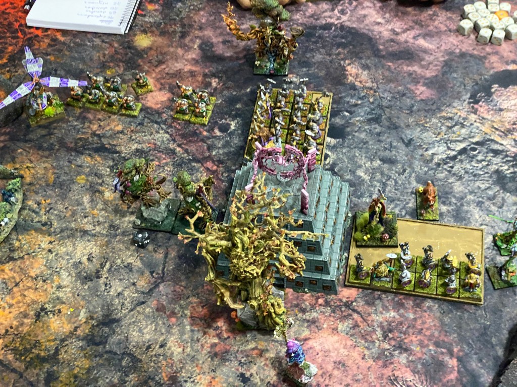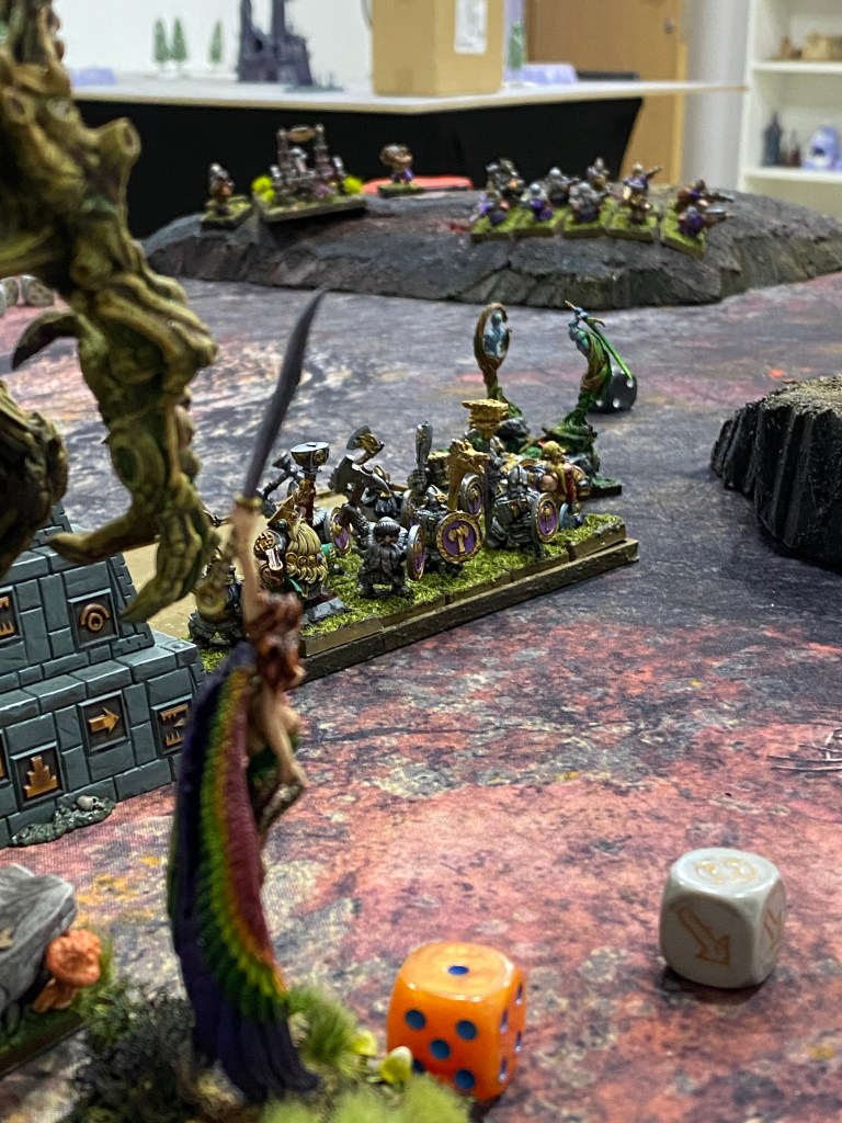 RESULTADO FINAL: La terquedad enana causó estragos, pero la astucia y el sacrificio de Rocasangre prevalecieron. Al asegurar el templo y evitar que el enemigo cumpliera su misión, la hueste Asrai se alza con la victoria.